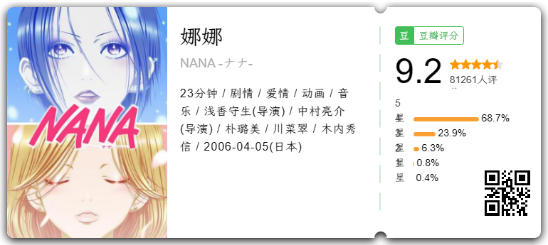大崎娜娜(朴璐美 配音),心怀音乐梦的朋克女青年,曾在家乡和男友本城莲(木内秀信 配音)、好友高木泰(川原庆久 配音)、寺岛伸夫(关智一 配音)合组乐队Black Stones,后因莲被当红乐队Trapnest挖角到东京发展,二人被迫分手。时隔两年,娜娜也决定前往东京, 找来泰和伸夫重整Black Stones旗鼓,誓要和莲的Trapnest一拼高下。小松奈奈(KAORI 配音),永远沉浸在恋爱梦中的不靠谱小镇姑娘,因男友远藤章司(高桥广树 配音)到东京求学备受异地恋煎熬,而今终于有机会移居东京陪伴章司。两个名字发音同为“nana”的女孩相遇在去往东京的新干线上,又十分凑巧地看重同一间“707”号公寓,二人决定合租。