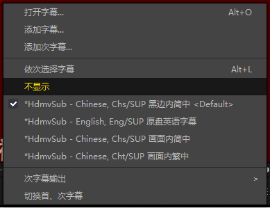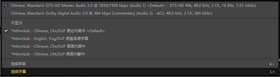 内封4条PGS格式字幕:黑边内简中/原盘英语字幕/画面内简中/画面内繁中