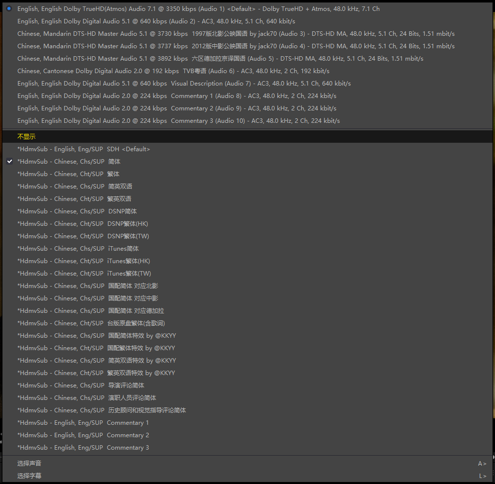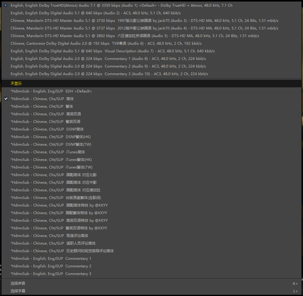 Complete name                  : D:\115\已下载完成\Titanic.1997.UHD.Blu-ray.2160p.10bit.HDR.3Audio.TrueHD(Atmos).7.1.x265-beAst.mkv