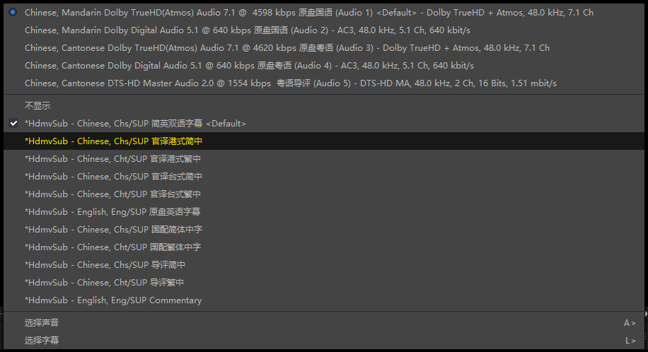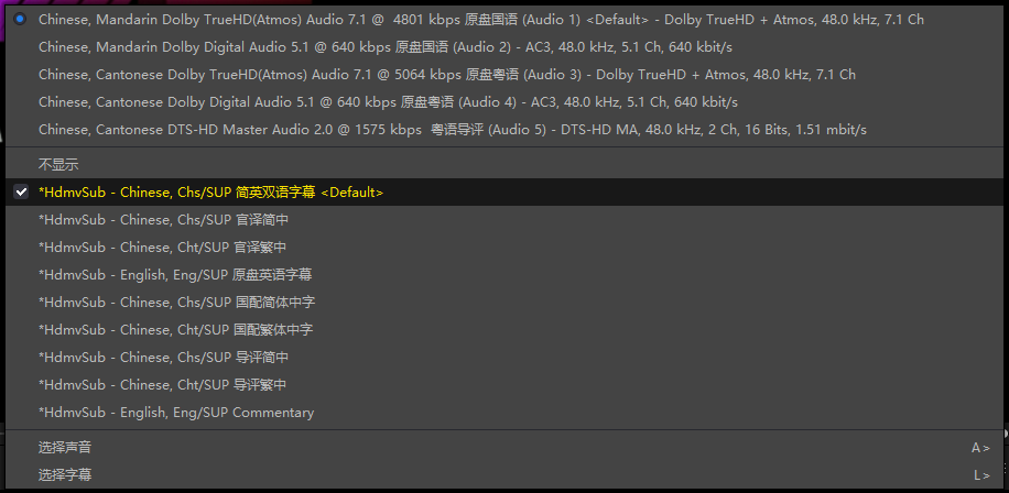 Title : Cantonese DTS-HD Master Audio 2.0 @ 1575 kbps 粤语导评