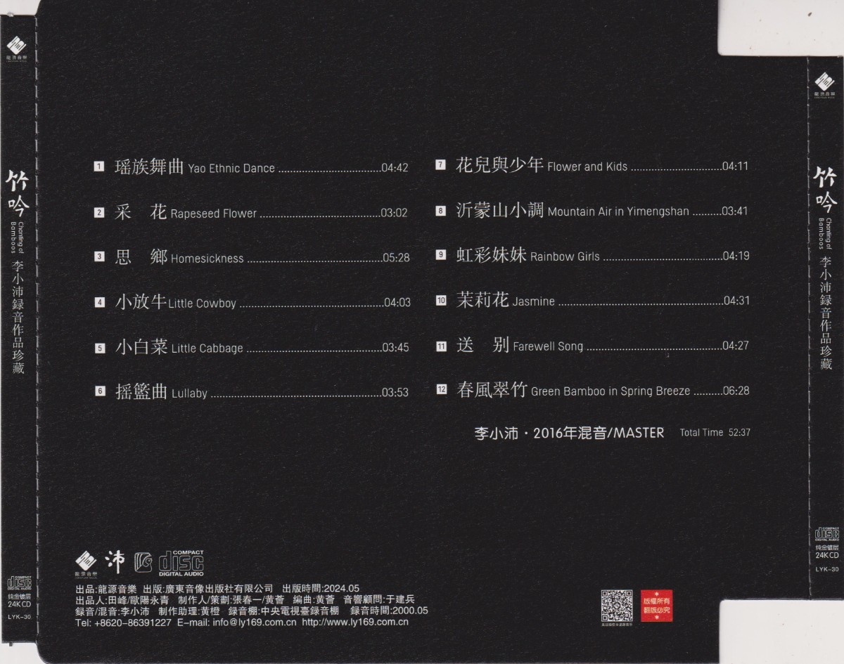 01.瑶族舞曲02.采花03.思乡04.小放牛05.小白菜06.摇篮曲07.花儿与少年08.沂蒙山小调 09.虹彩妹妹10.茉莉花11.送别12.春风翠竹