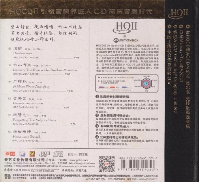 01.酒醉02.竹山听雨03.广陵散04.普庵咒05.鸥鹭忘机06.归去来辞