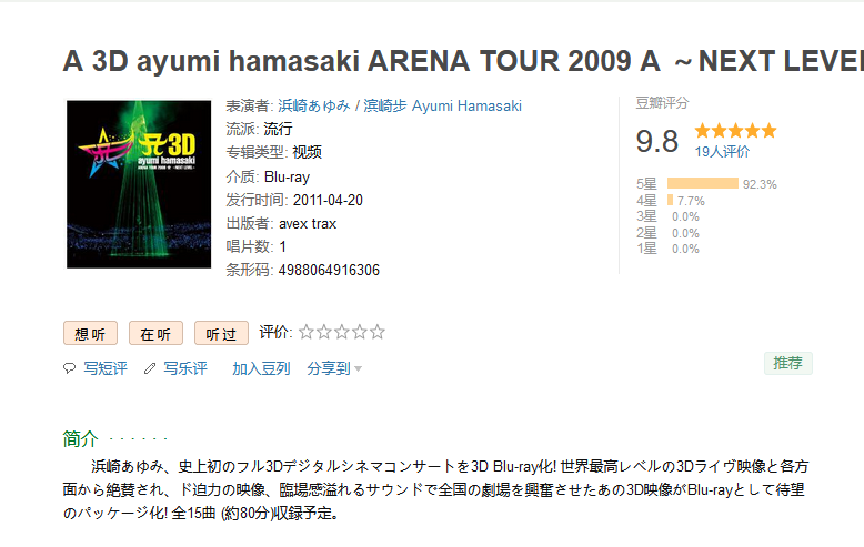 [演唱会]滨崎步 2009年演唱会 2009[iso原盘1080p][无字片源][3D][32.77GB] 原盘 演唱会